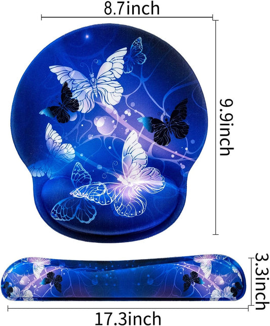 Keyboard Wrist Rest and Mouse Pad with Wrist Support, Memory Foam Set for Gaming and Office, Comfortable & Lightweight for Easy Typing & Pain Relief (White Butterflies)