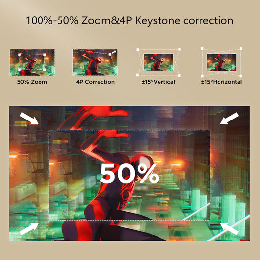 Projector with Wifi and Bluetooth, 4K Support Native 1080P Outdoor Movie Projector, 15000LM Full HD Video Projector, LCD Technology 250" Display Home Theater, Auto Focus & Zoom